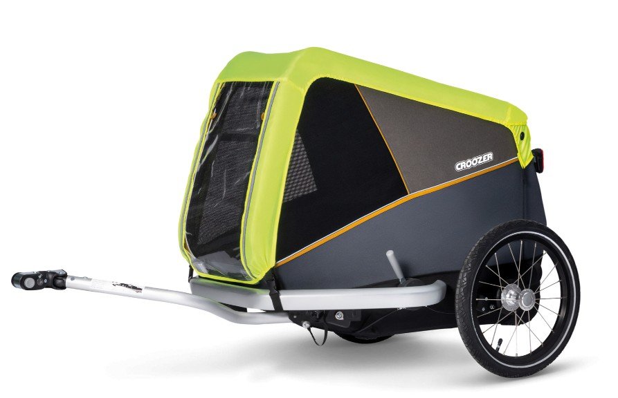 Fahrradanhänger für den Transport von Hunden bis 35 kg. Mit Croozer AirPad Federung, geländetauglicher Bereifung und komfortablem Faltsystem.